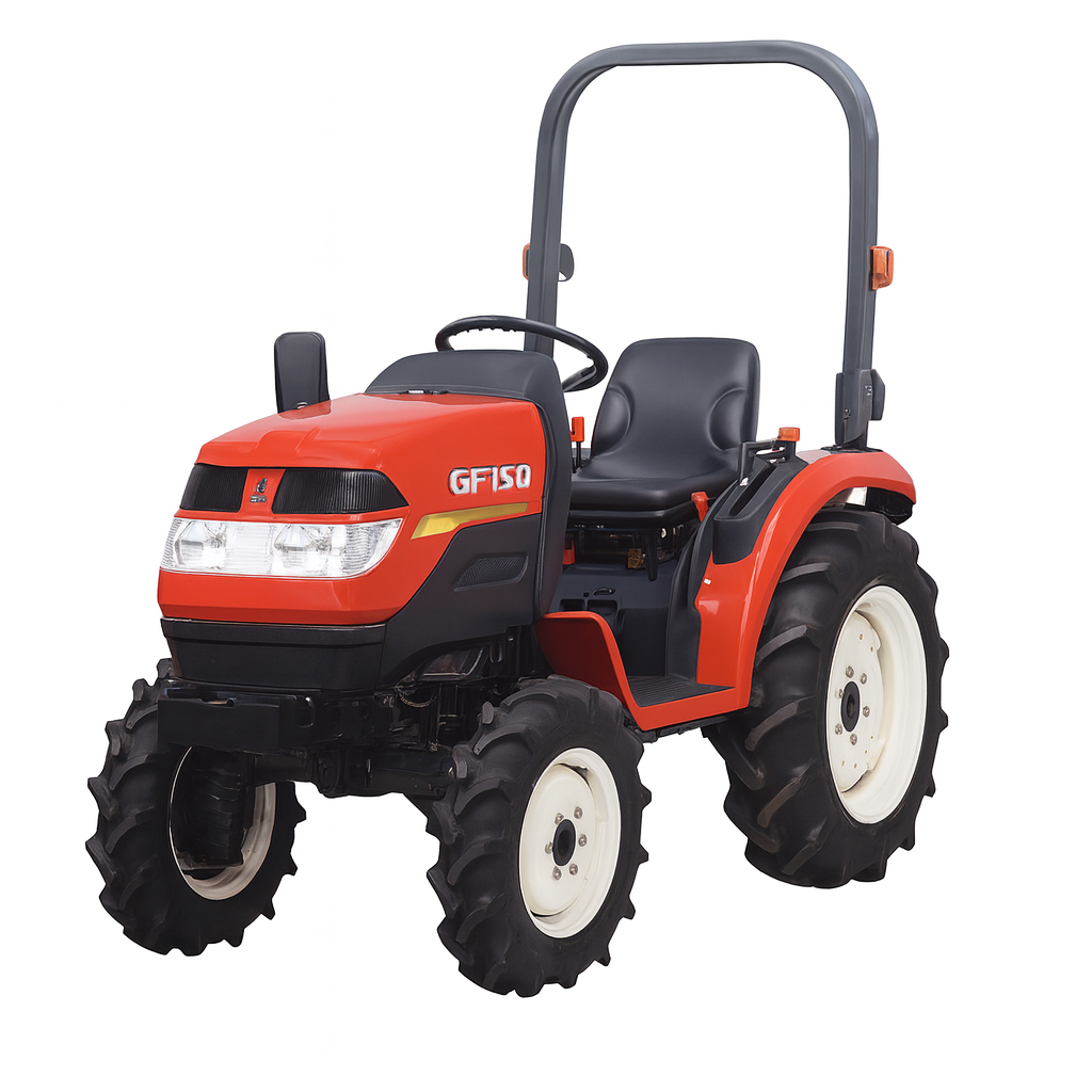 The GF150 is powered by a 1.0L 3-cylinder Mitsubishi diesel engine, designed for fuel efficiency and durability. It provides sufficient horsepower for light-to-medium agricultural work and can handle a variety of implements.