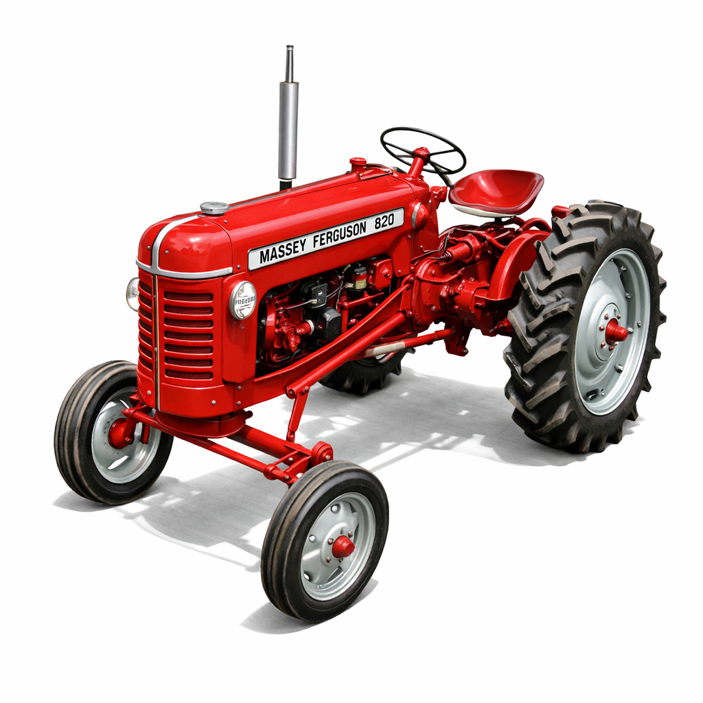The MF 820 sits between earlier Pony-series tractors and the later MF 821.