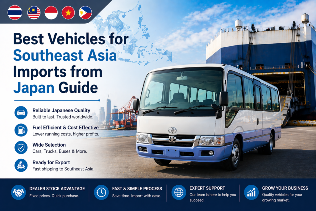 Best vehicles for Southeast Asia imports are in high demand as markets across the region continue to grow. Importers, dealers, and business buyers are looking for reliable cars, trucks, and buses from Japan that match local needs. In Southeast Asia, buyers focus on fuel efficiency, durability, and easy maintenance.