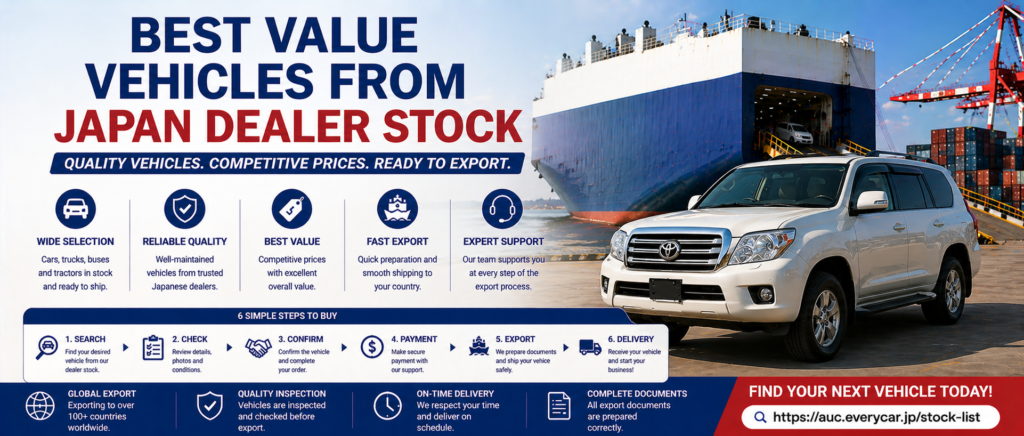 If you are looking for strong returns in your import business, the Best Value Vehicles from Japan Dealer Stock are the best choice. Many global buyers choose Japan for quality, reliability, and stable pricing.