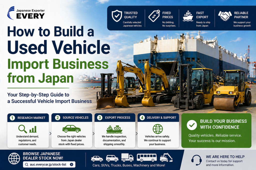 How to build a used vehicle import business is an important topic for entrepreneurs, dealers, and companies looking to enter the global automotive market. Importing used cars, trucks, buses, and machinery from Japan offers strong business opportunities due to high demand and trusted product quality.