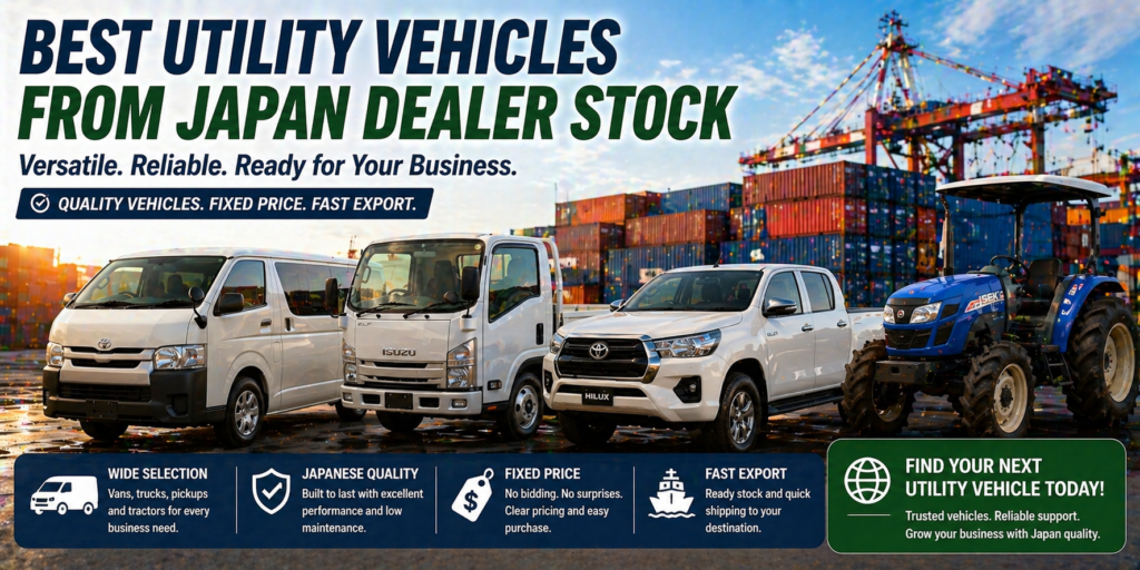 In this guide, we introduce the best utility vehicles from Japan dealer stock. We also explain how dealer stock helps buyers purchase quickly with fixed pricing and fast export.